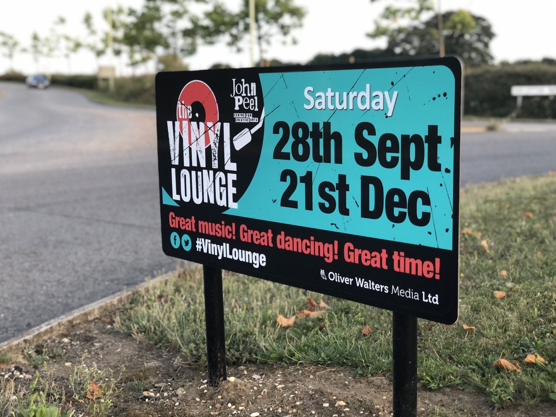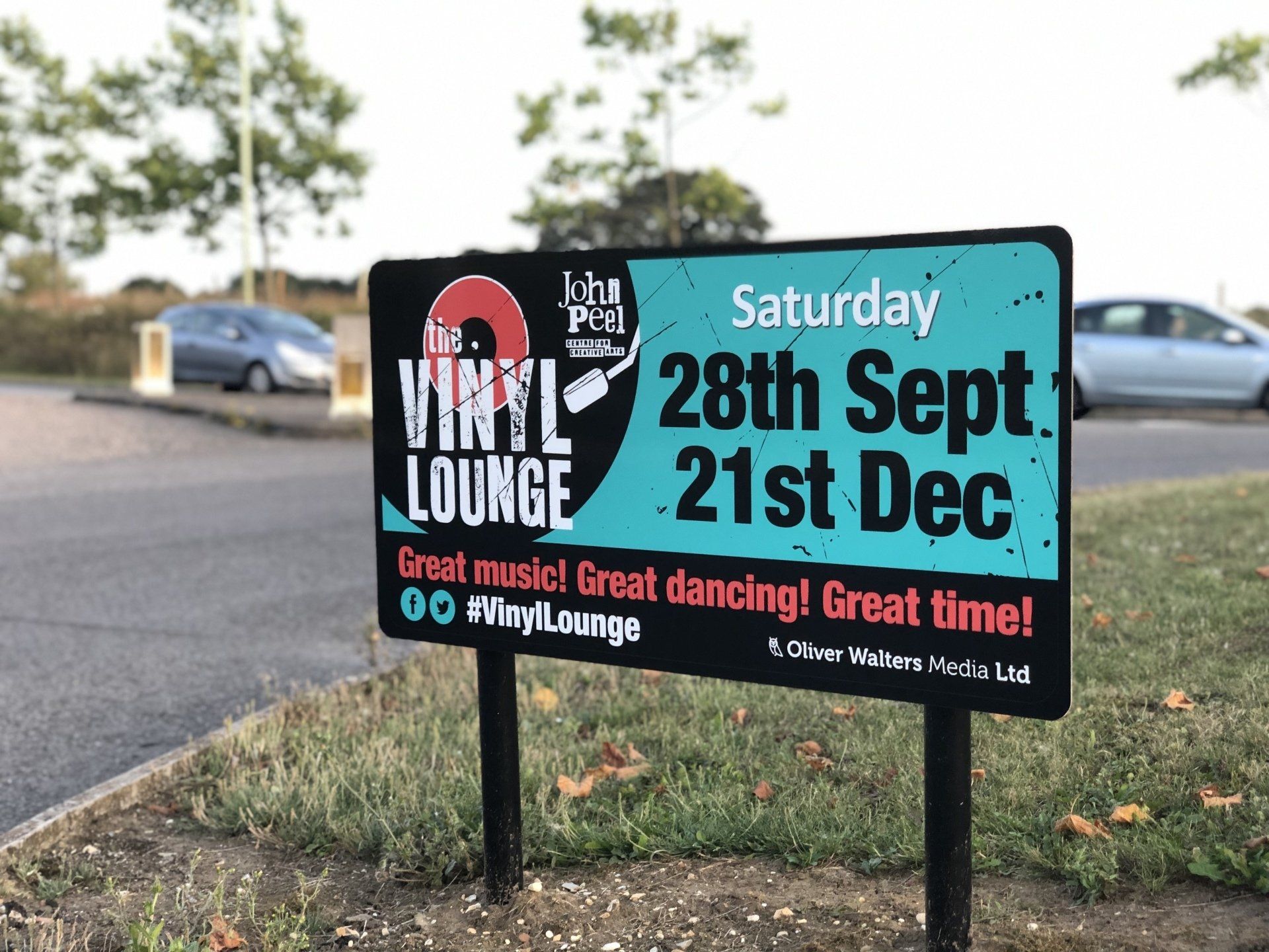 Oliver Walters Media is delighted and proud to support the John Peel Centre in Stowmarket. From early September to mid November, the company donated 5 signs on two roundabouts near Tesco on the outskirts of Stowmarket, to promote the centre and in particular the Vinyl Lounge. The Christmas Vinyl Lounge, one of the most popular events has broken all records... helped out by the posters we'd like to think and has sold out over 6 weeks ahead of the event. If you'd like to see what these roundabouts can do for your business/charity/event, please do get in touch.
