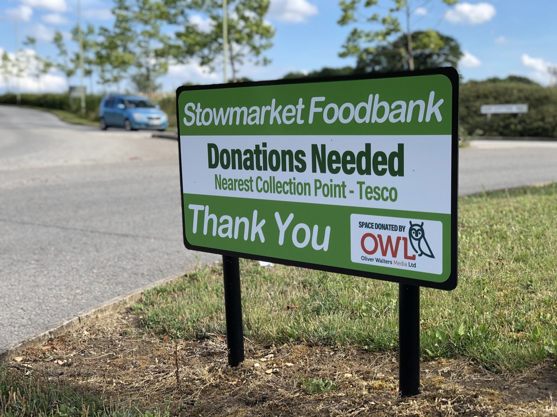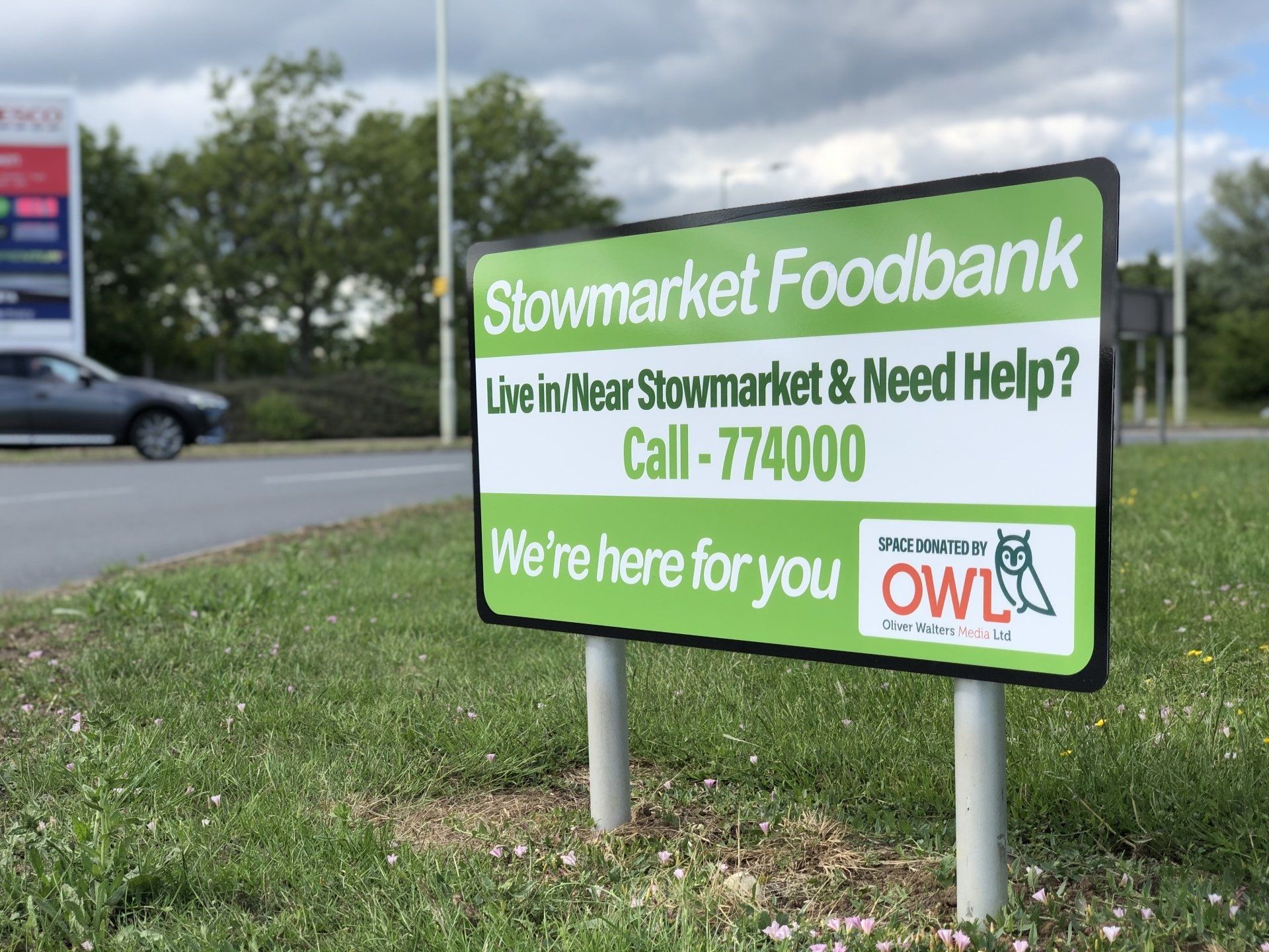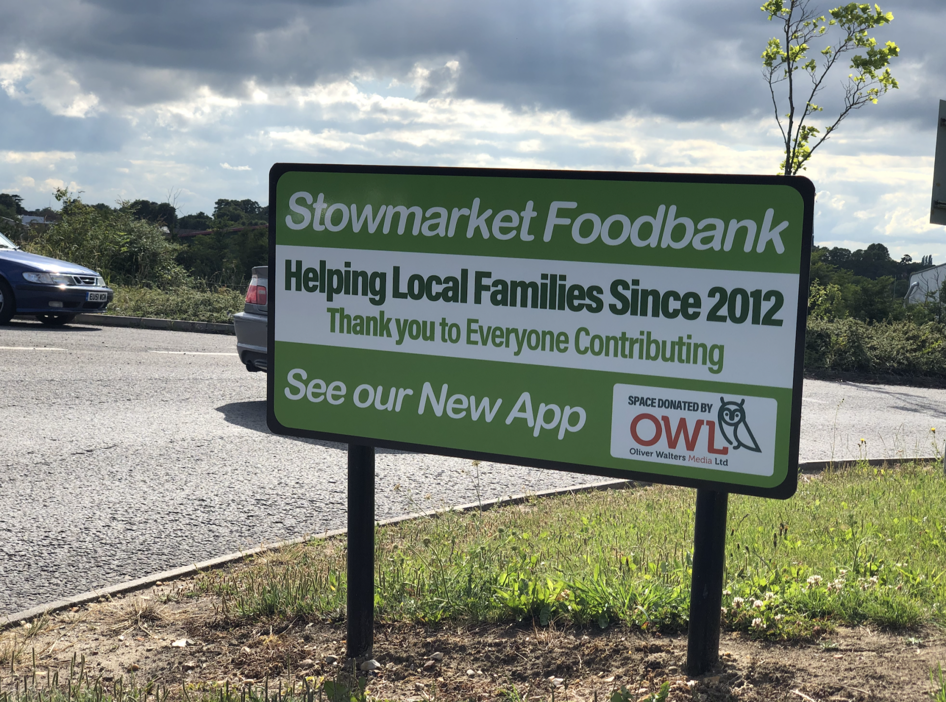 In unprecedented times, some things are more important so Oliver Walters (Media) Ltd has donated most of its space locally on two key roundabouts for the next couple of months to help raise awareness for the Stowmarket & Area Foodbank and help promote its new App that has just launched. It was launched in October 2012 to provide individuals and families from Stowmarket and the surrounding areas who are in crisis with emergency food parcels. It has been an extremely busy time with demand increasing year on year, but no one could have predicted the current crisis and its devastating effects. Before the pandemic hit, they were supporting an average of 60 families per month. That has now increased to around 160!